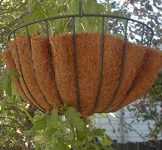 ** How to cut the hold in the center of the coconut liner easily? Fold your coconut liner in half, then in half again. Take your scissors, and clip a tiny triangle out of the point. When you unfold the liner, you will have a tiny circle in it. Now, take your fingers, and stick them in the hole, stretching them until the hole is large enough to stick your leaves/stalk through, but not so large that the tomato start and soil fall through the hole. I usually can fit my three middle fingers through the hole, which looks small, but will be more than enough to get the tomato plant through safely, without squishing or damaging the stalk.