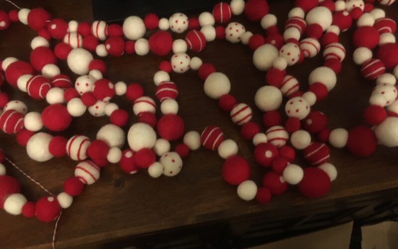 Take a look at the garland I’ll be adding to our Christmas tree this year! It’s needle-felted balls, strung together with cotton twine, and it’s absolutely adorable! Bright and cozy and homey, and just perfect for this year’s tree decorated with cozy needle-felted woodland animals, santas, elves, and gnomes! After the chaotic year we’ve all had, cozy felt like the right decor for this year’s holiday celebrations.