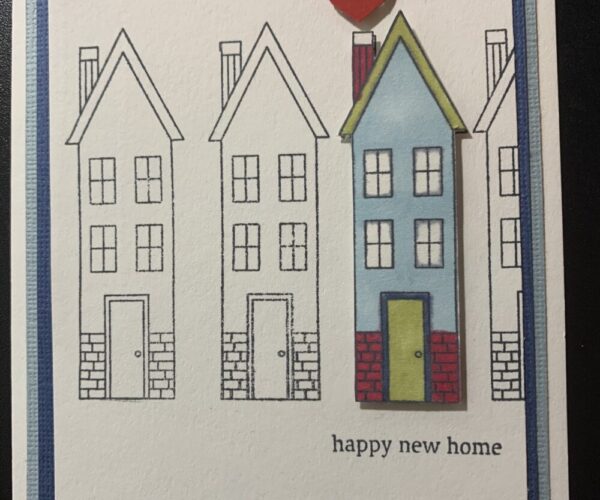 Can I tell you how much I love Pinterest? There are days when I feel like creating, but the creative inspiration just isn’t there. We all have those days, right? Well I find searching around on Pinterest provides me with the inspiration, the creative stimulation, and well, sometimes the best ideas to try and make my own. Many times the stamping and paper companies provide inspiring ideas so you’ll use their products. And Stampin’ Up and a number of their representatives are amazing at coming up with various card designs to use for their stamps. I searched and found Stampin’ Up’s Demonstator Allison, and she posted exactly what I was hoping for! Just the inspiration I needed for today’s card inspiration to send to friends who just moved! Thanks to Allison, Stampin’ Up, and Pinterest for helping a girl out!