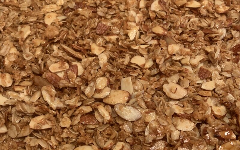 Granola is one of my favorite crunchy snacks. I love adding it to yogurt or ice cream, or just munching it for a mid-afternoon snack. Making your own at home is really simple – and you can even make some to give to friends!